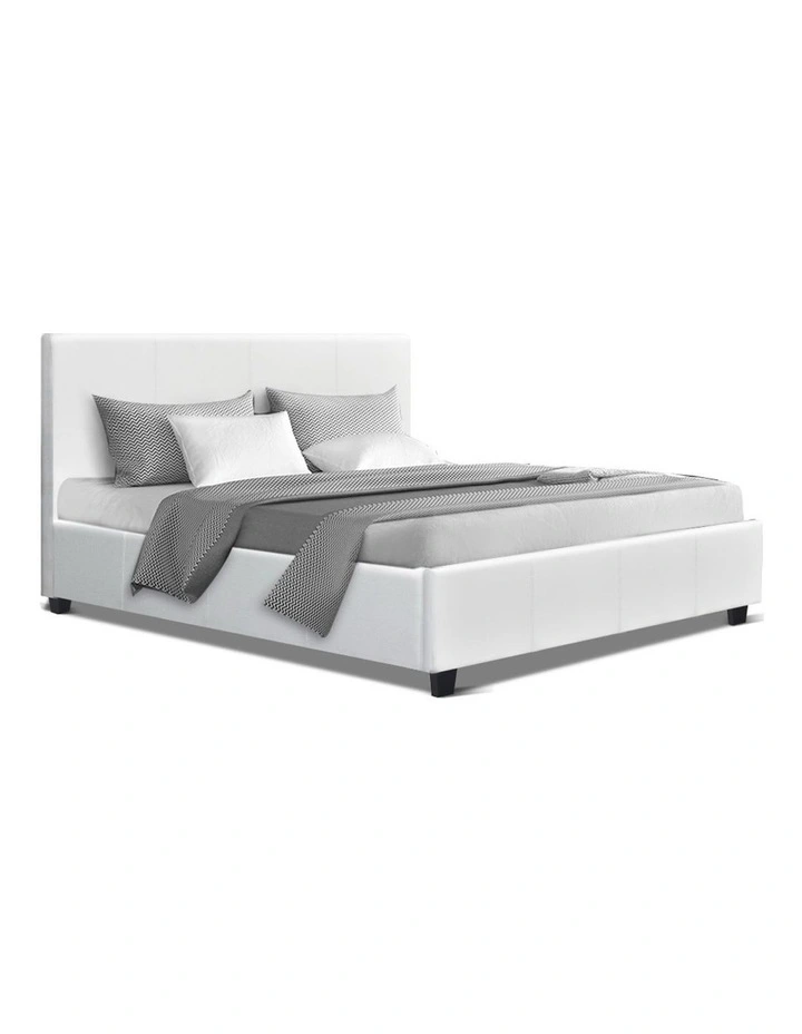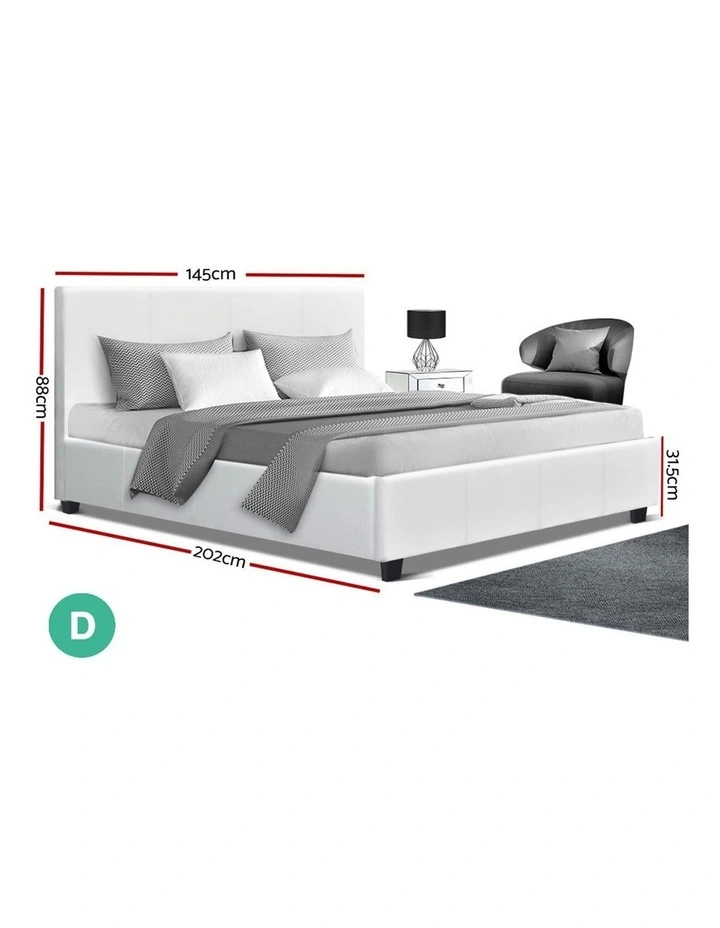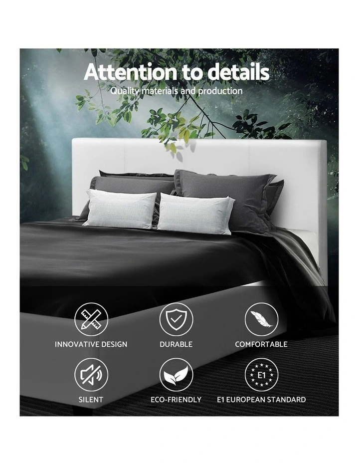 Double Full Size Bed Frame Base Mattress Platform White Leather Wooden NEO