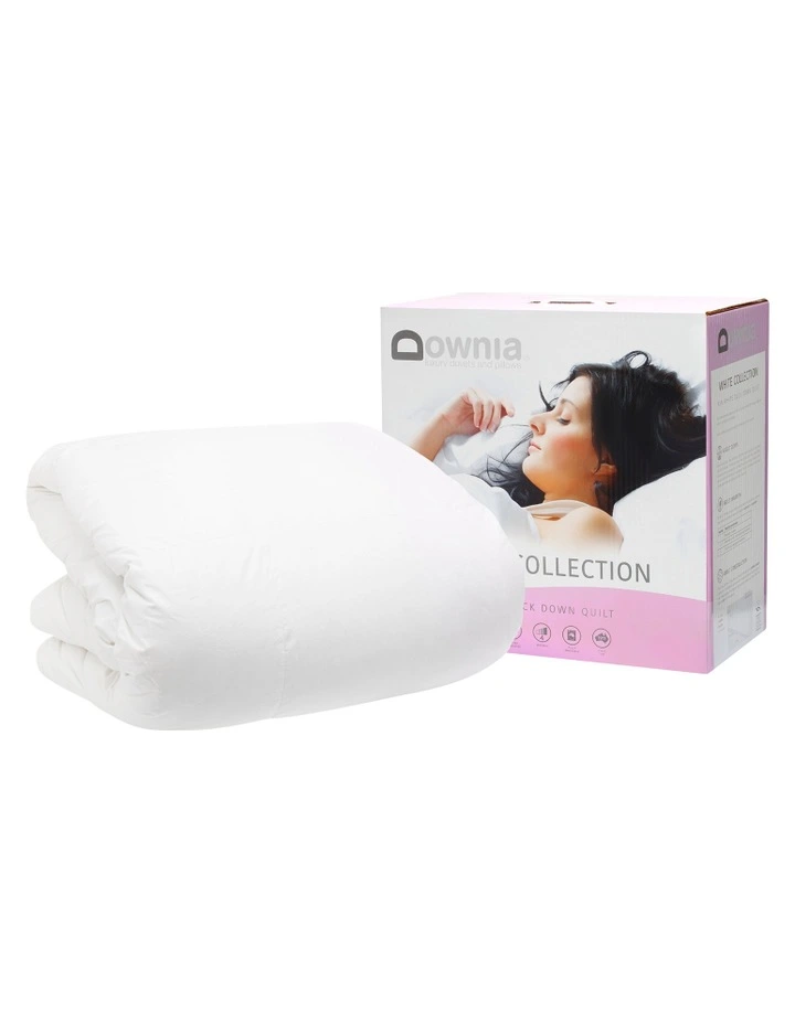 Ideal for use in the autumn, spring and winter months, the DOWNIA White Collection Duck Down Quilt offers premium warmth without the weight. With 85% duck down clusters and 15% duck down feathers, this quilt delivers great insulation without the weight. It has a baffled cassette construction using a soft, 280 thread count cotton down-proof casing to protect the filling from dust mites and keep the quilt asthma and allergy friendly.